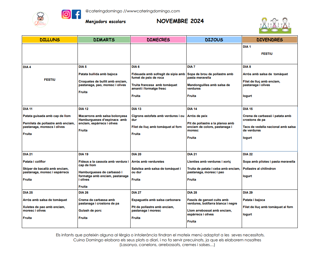 menu novembre