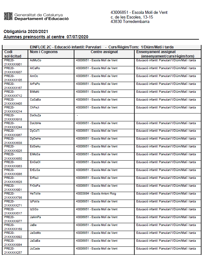 Publicat 7 de juliol de 2020 a 650 &vegades; 824 en preinscrits.