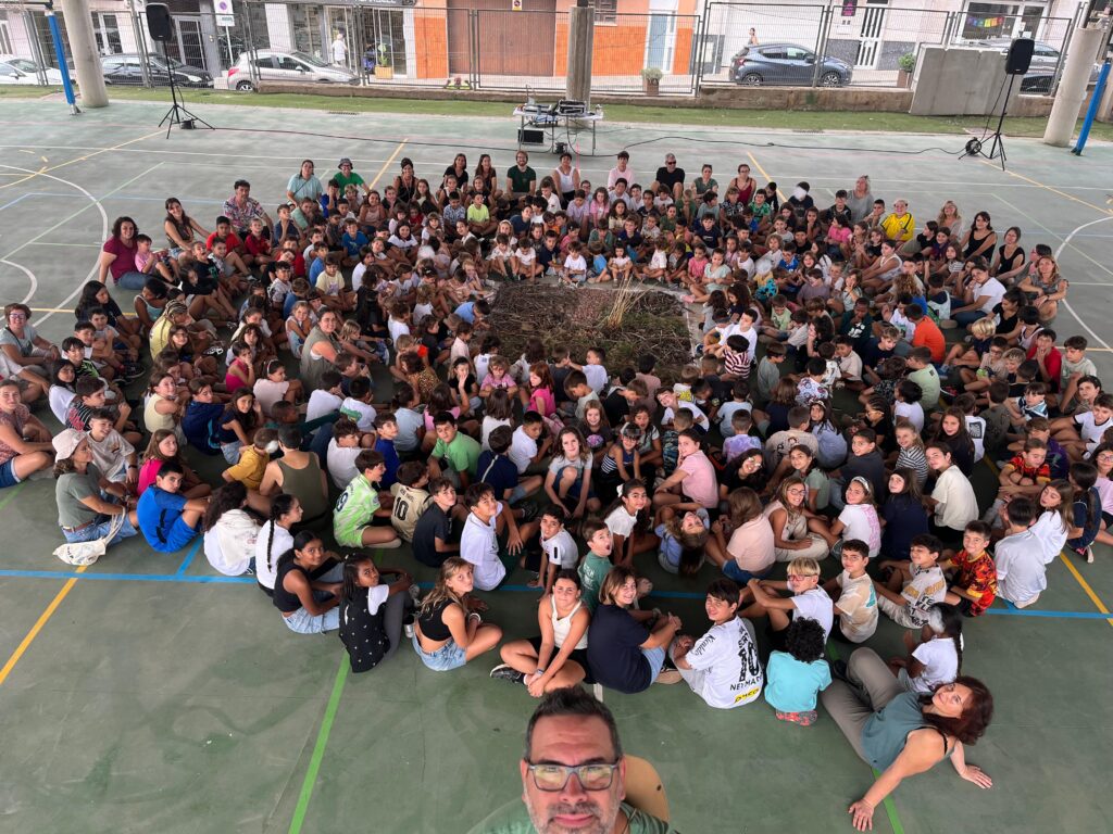 Després de sortir a recollir materials per l’escola i pels voltants, hem creat entre tots i totes un gran mural a la pista, ple de colors, textures i vida. 🌸🌿🌼