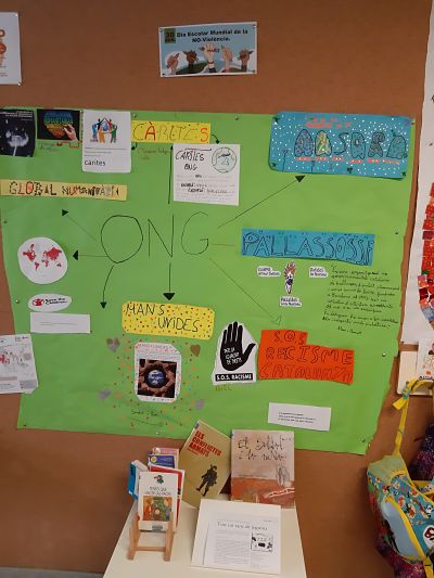 Amb motiu d’aquesta diada a l’escola vam fer un acte conjunt al pati on tothom va col·laborar amb cançons, una petita representació, murals i manualitats. Aquest dia marca el tancament d’una feina començada a l’octubre amb els alumnes de primària sobre les ONG, les armes i una adaptació del conte d’ACNUR “La petita Carlota” que ens ha permet treballar valors tan importants com ara: l’estima, la solidaritat, la tolerància, l’amistat, el treball en equip i l’agraïment vers el que tenim.