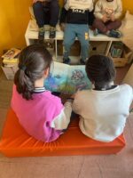 Els alumnes de sisè fan de padrins lectors dels alumnes d’educació infantil. Una tarda, comparteixen una estona especial de lectura, en què els més grans llegeixen contes als més petits. Aquesta activitat fomenta el gust per la lectura, reforça els vincles entre etapes i crea moments de complicitat i aprenentatge compartit.