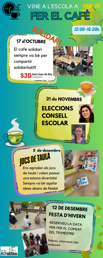 El divendres 20 a la tarda, podreu compartir el cafè amb les famílies de l’escola i us explicaran les… Llegeix més»