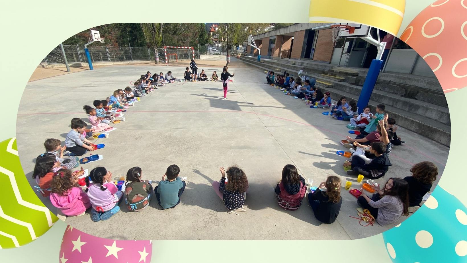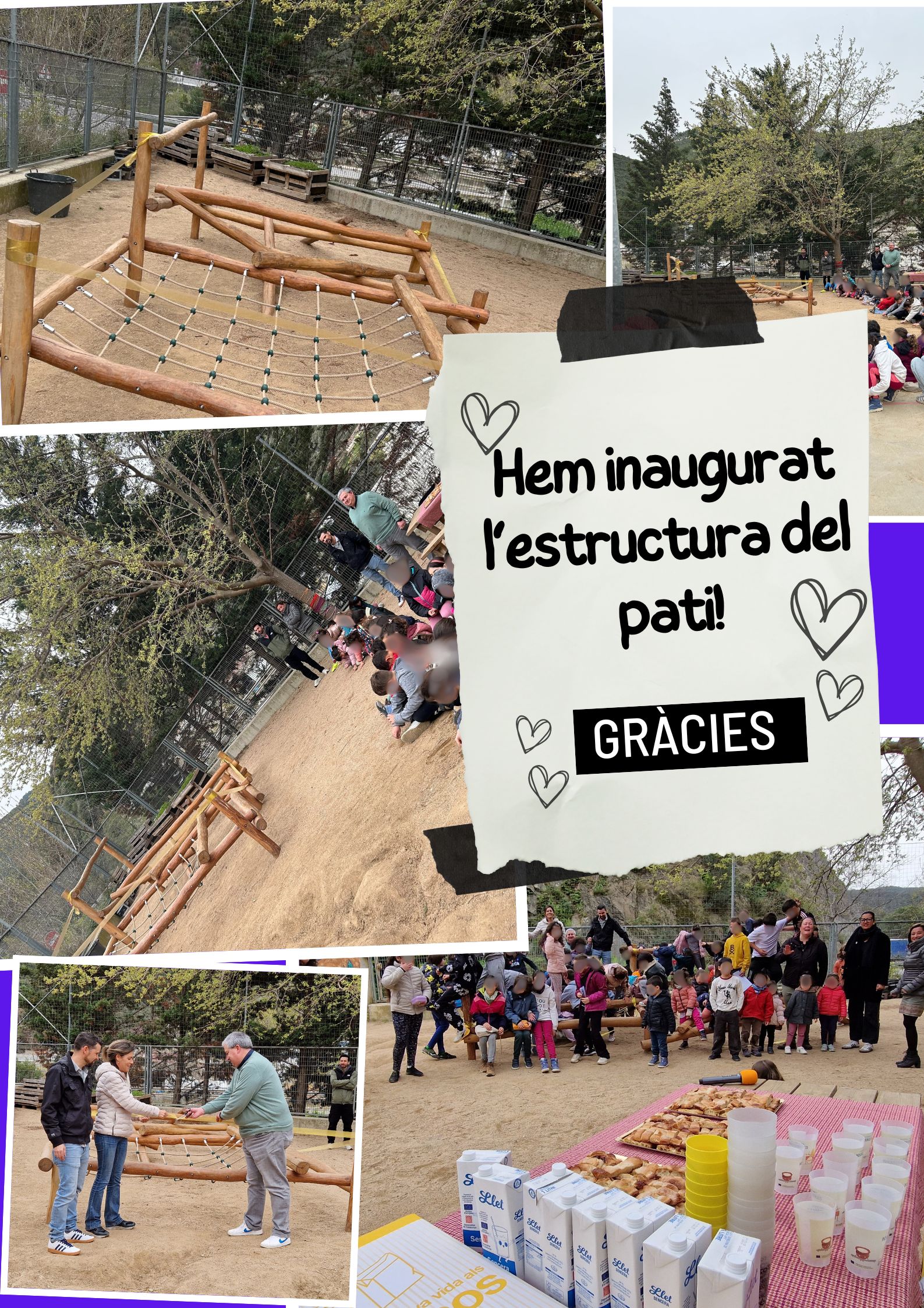 EL DIJOUS 16 DE GENER DE 2025 A L’ESCOLA MONTMANY L’AJUNTAMENT I L’ESCOLA, VAN COMPRAR UNA ESTRUCTURA PER SALVAR EL PATI.
