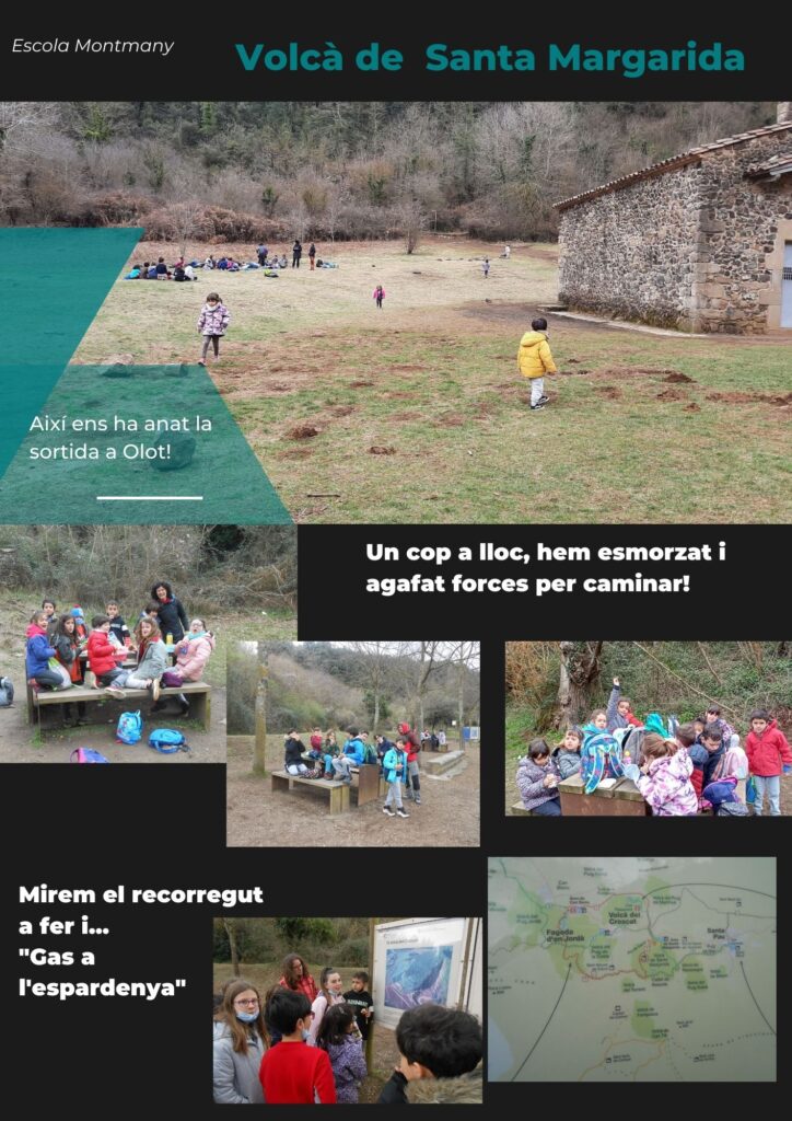 Allà vam poder portar a terme les activitats d’investigació que teníem plantejades i vam poder explicar a la resta de l’escola quin és l’origen del nom d’aquesta muntanya de foc: què millor que fer-ho allà mateix , a peu de l’ermita.