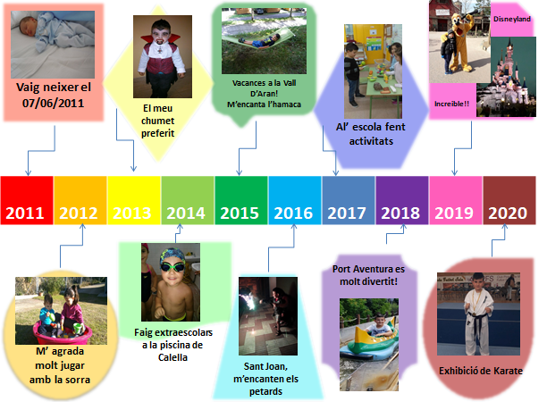 Podeu escollir entre una més senzilla (la linia del temps) o una més elaborada (dossier de la vostra vida) Un cop fet m’envieu una o varies fotografies al correu electrònic on es vegi molt bé com ha quedat del resultat. Així ho penjarem aquí mateix amb totes les vostres activitats i tots i totes les podrem veure.