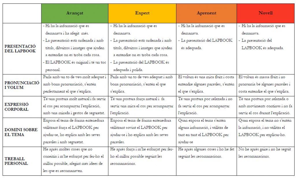 Aquí teniu la rúbrica per saber què es valorarà d’aquesta activitat