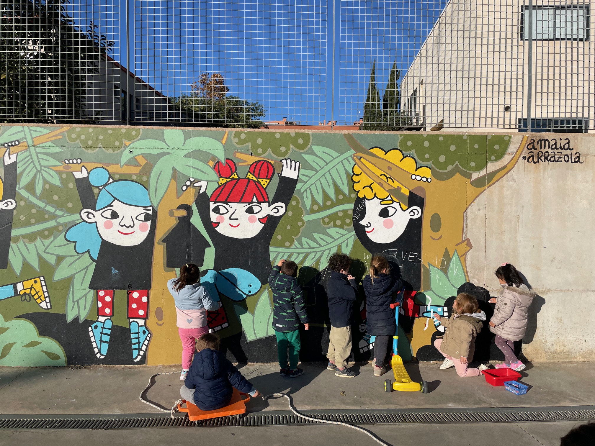 El mural d’Amaia Arrazola no només embelleix l’espai, sinó que es converteix en una font d’inspiració per als infants i un homenatge a la mirada artística que va compartir amb nosaltres.