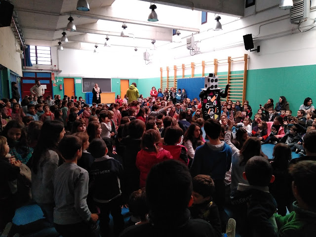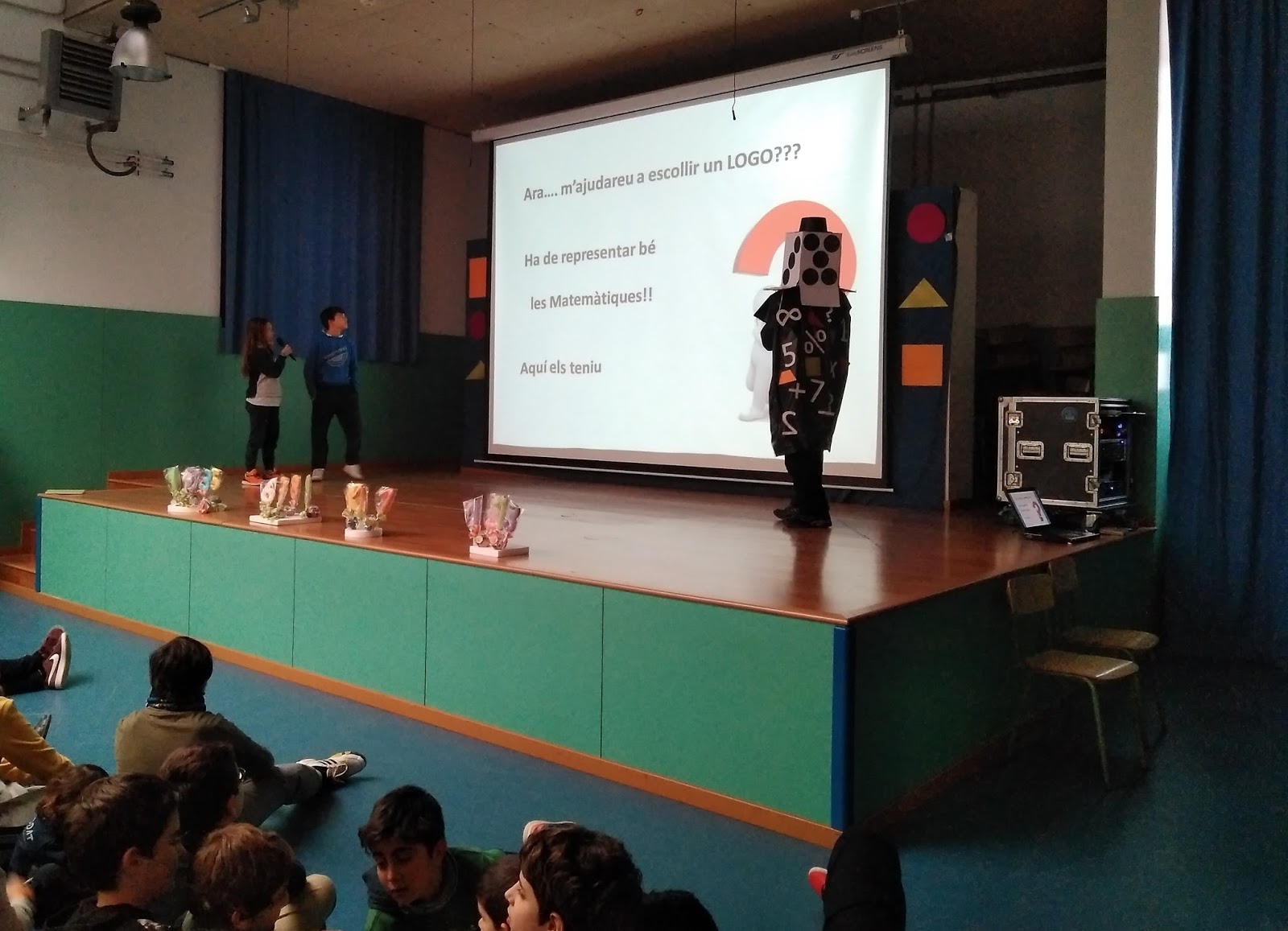 Ens ha vingut a visitar el senyor Enigma i ens ha donat les pautes per treballar les matemàtiques Hem resolt enigmes i hem votat el Logo del projecte . Al final ens ha donat un número (de sucre) i uns emoticonos (de xocolata). Boníssims!!