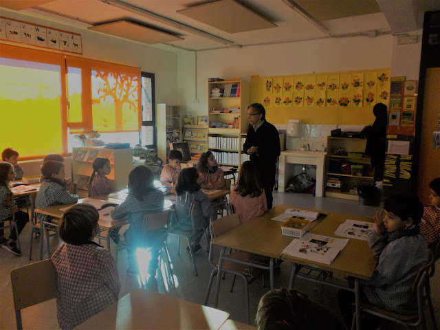 Els animadors i contacontes que coordinen el projecte , van venir a fer la presentació de les maletes amb els llibres a cada classe.