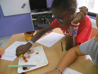Els alumnes de sisè han treballat al laboratori el sentit de la vista i han diseccionat un ull de vaca. Han pogut observar l’iris , la còrnia , la pupil.la,el crsital.lí , la retina i el nervi òptic . A continuació teniu un fotomuntatge i unes fotos del procès