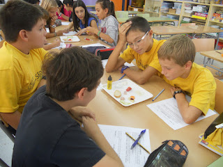 Els alumnes de cinquè A i B han realitzat en les últimes setmanes uns tallers de ciències sobre els temes que estan treballant a l’aula . Al Cosmocaixa van fer dos tallers , un sobre la llum i el color i un itinerari sobre l’evolució humana . Al laboratori de l’escola hem estat treballant la matèria i hem fet una pràctica de separació de mescles
