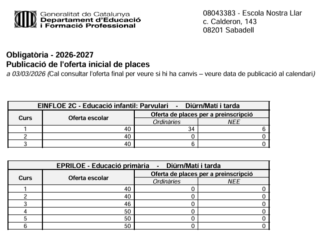 28/02/26La preinscripció 2026-2027 serà del 4 al 18 de març de 2026.