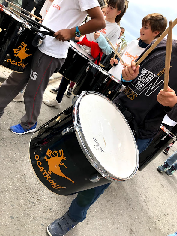 La rua de Sant Jordi és una tradició de la nostra escola. I per a treure al nostre drac a passejar es necessita una mica de música. Així que els/les alumnes de cinquè són els/les encarregats/des de posar aquest toc de festa a la rua de Sant Jordi amb els timbals. Prèviament, fan un taller per tal d’aprendre uns ritmes i familiaritzar-se amb els instruments.