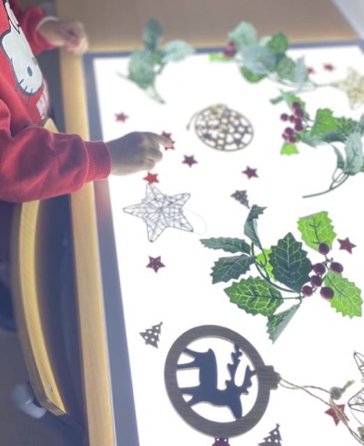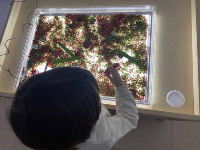 Amb les matemàtiques manipulatives els infants poden crear sèries, reproduir patrons i experimentar amb materials atractius, amb colors i elements propis d’aquesta època. Paral·lelament, a l’aula sensorial, gaudeixen de propostes plenes de color a les taules de llum i per tot l’espai, on diferents materials conviden a observar, tocar i sorprendre’s.