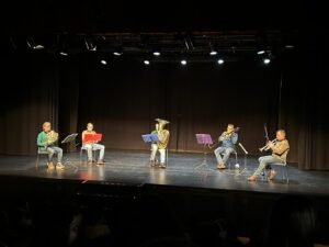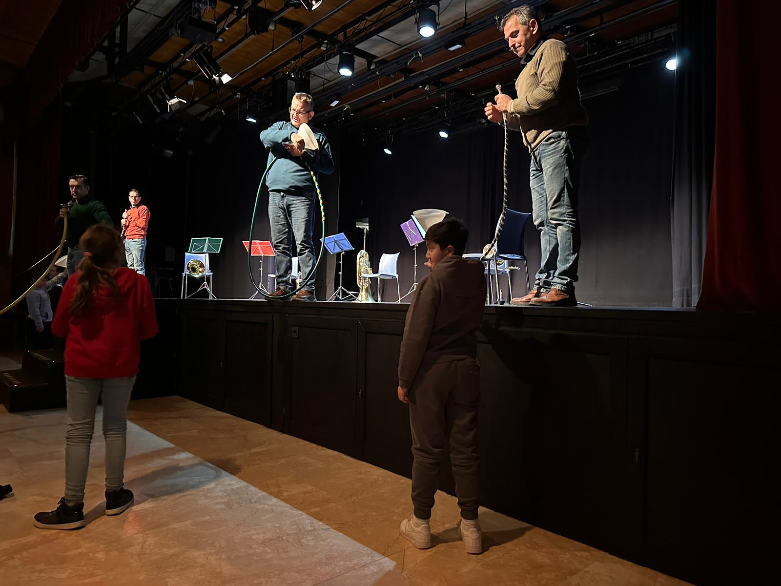 El dimarts 11 de febrer, la comunitat de grans vam anar al teatre Can Massallera a veure l’audició “El so del Metall”, de Barna Brass Quintet. En l’audició vam poder gaudir del so de la trompeta, la trompa, el trombó i la tuba. Ens van explicar quines eren les seves parts i les característiques sonores de cada instrument. També vam experimentar amb diferents mides de tubs, on segons la gruixuda i la llargada sona més greu o més agut.