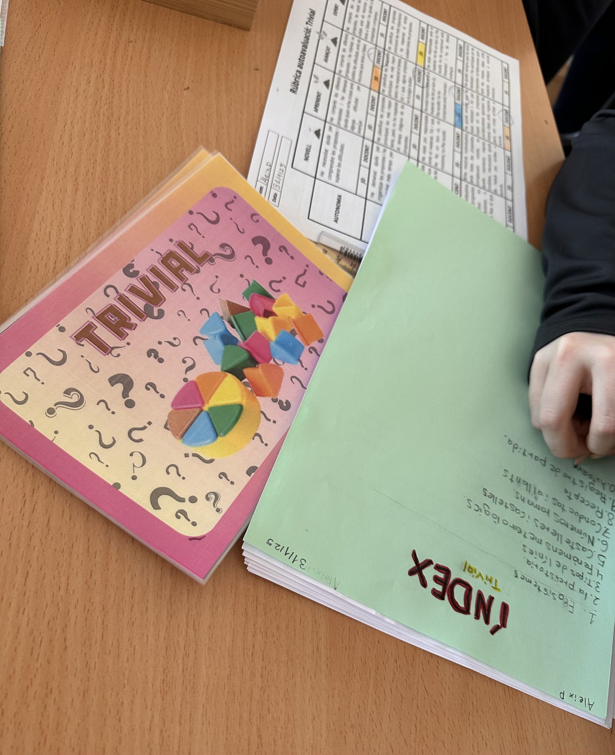 • AUTOAVALUACIÓ: al final de cada capsa, duem a terme una autoavaluació, la qual reflexionem primerament amb el nostre grup i després la realitzem individualment segons el que hem conversat amb els nostres companys i companyes. Aquesta autoavaluació ens ajuda a reflexionar sobre la nostra tasca. Finalment, els i les mestres ens fan un “feedback” sobre aquesta reflexió.