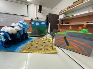 A 6è estem treballant fenòmens geològics naturals derivats de l’activitat interna de la Terra. Per petits grups, ens hem especialitzat amb els volcans, els terratrèmols, i els tsunamis; hem après per què es produeixen i quina relació tenen amb el moviment de les plaques tectòniques. També hem descobert quines són les zones del món més afectades per aquests fenòmens i què podem fer per prevenir-ne els riscos. A part de la investigació prèvia, hem construït maquetes per simular aquests fenòmens i hem creat alguns experiments, per observar l’efecte d’una erupció volcànica.