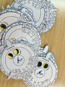 La segona activitat consistia en fer un selenoscopi. El selenoscopi és un aparell que ens ajuda a saber la fase de la lluna d’un dia concret, per exemple, el dia del nostre naixement. L’Abril ens va ajudar a fer la manualitat. Va ser genial i ens va agradar molt!