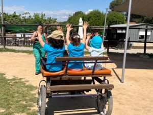 Els nens i nenes d’I3 vam visitar la granja Can Pidelaserra i vam veure molts animals que prèviament haviem descobert a l’escola: hem vist gallines i pollets…hem pogut tocar conills, hem donat de menjar a la vaca Vela, la porqueta Georgina, les cabretes, els cavalls… també hem donat el biberó a l’ovelleta i hem pujat al carro amb el poni Spiderman!