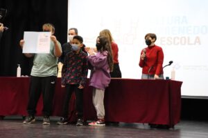 El passat 1 de febrer, l’alumnat de 5è junt amb les altres tres escoles participants en la iniciativa de Cultura Emprenedora a l’Escola, es va reunir a Can Massallera per celebrar l’acte de lliurament del CIF per a les cooperatives creades enguany. En aquest acte, l’equip directiu de La Comprativa va rebre de mans de l’alcaldessa Lluïsa Moret i la tinenta d’alcaldia de Ciutat Educadora Alba Martínez, tota la documentació necessària per a poder iniciar l’activitat comercial.