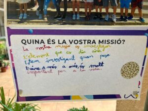 La classe de Segon B es diu “Les bombolles flotants” perquè volen saber quant pesa l’aire i s’han posat aquest nom perquè les bombolles tenen aire per dintre.