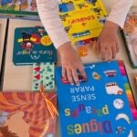 Al matí vam muntar la nostra pròpia paradeta per escollir el conte que més ens agradés de tots els que havíem estat portant de casa i, a dins, hi havia un punt de llibre sopresa, perquè com ja sabeu d’altres cursos, cada nivell fa un punt de llibre diferent i després ens els intercanviem!