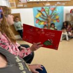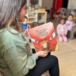 A la tarda vam continuar la celebració i en aquest cas vam fer intercanvi de mestres. Cada mestre/a va canviar d’aula i de grup d’infants per anar a explicar un conte de Sant Jordi amb versions ben diferents. Després, per acabar, vam sortir al pati tots plegats per ballar una mica i jugar.