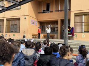 El pregó va ser molt divertit perquè els companys i les companyes de sisè anaven disfressats i el van anunciar com una obra de teatre i també amb rimes gracioses dels mestres, les mestres i el monitoratge del menjador