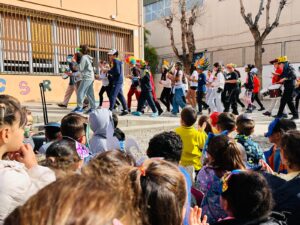 Primer, els infants de sisè van baixar per la rampa de l’entrada fent una batucada divertida.