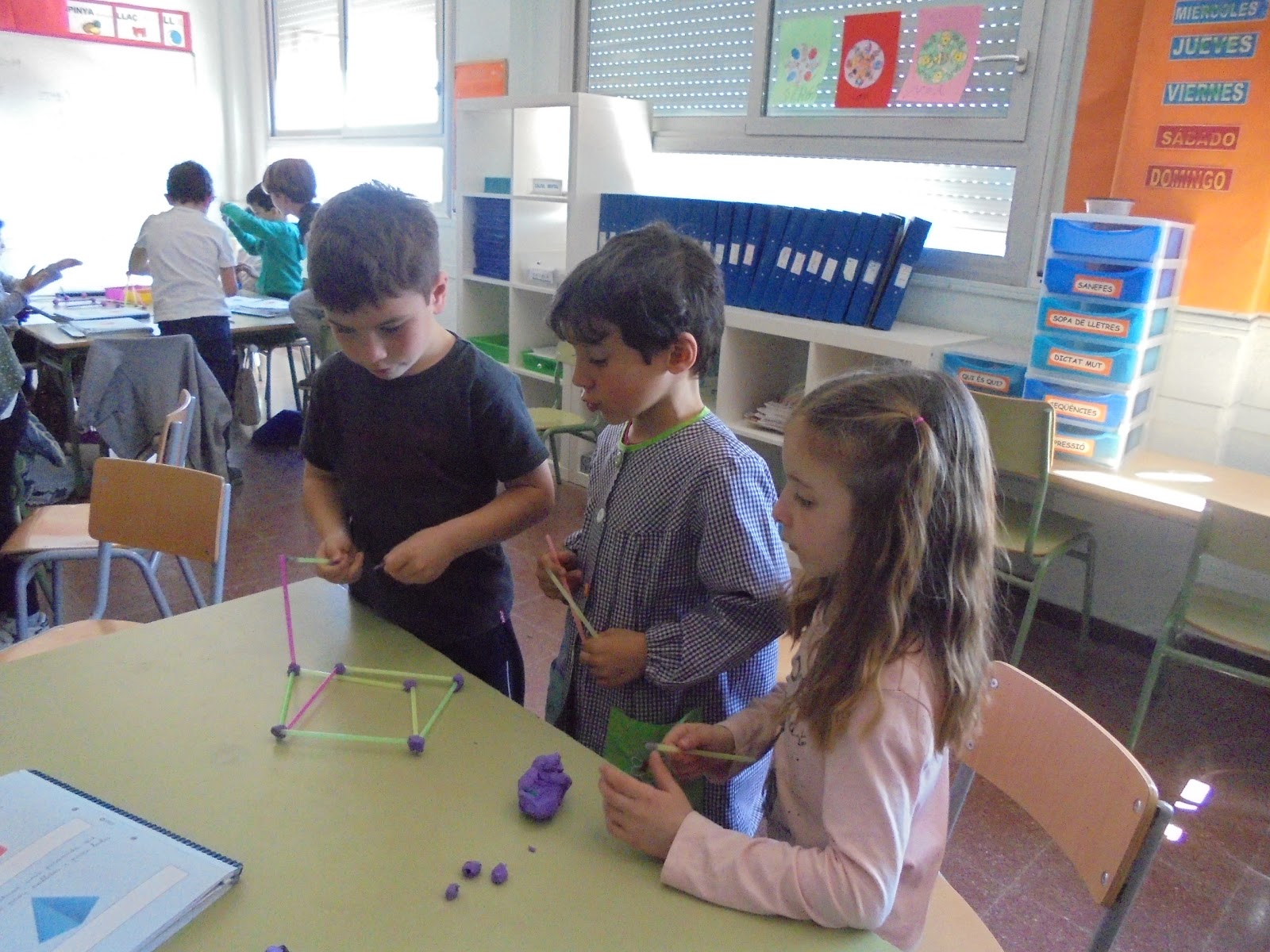 Aquest trimestre hem construit cubs i piràmides amb palletes de refresc i boles de plastilina i ens ho hem passat molt bé estudiant geometria.