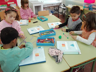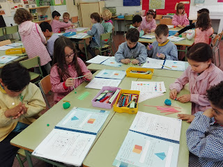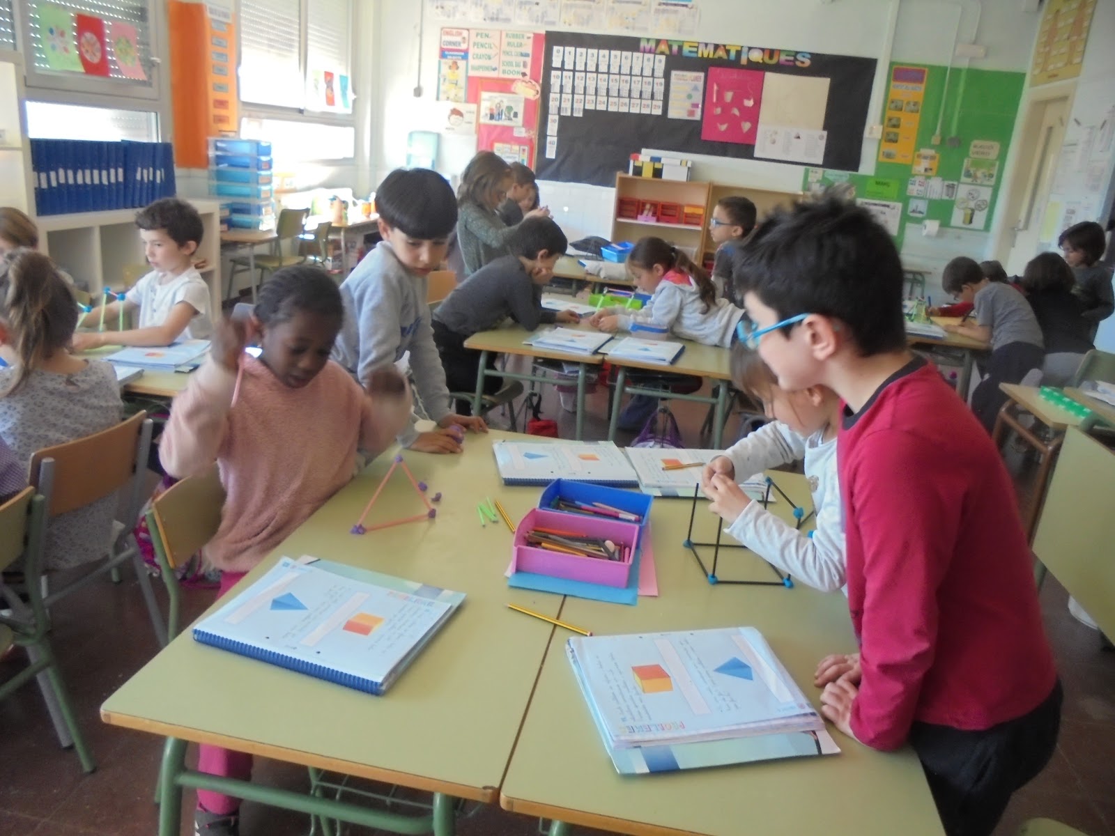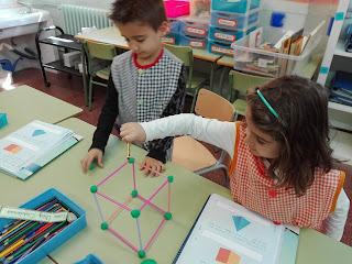 Els nens i nenes de 1r estem estudiant els cossos geomètrics.