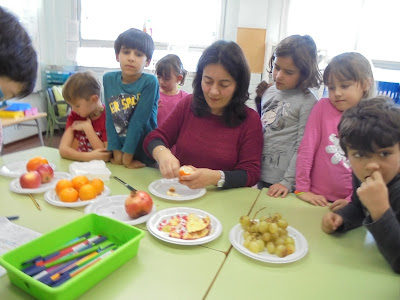 Caquis, magranes, poma, raïm, mandarina,… Res millor per aprendre quines són les fruites de tardor que després d’observar-les i dibuixar-les, … fer-ne un tast!