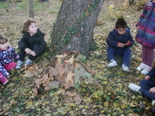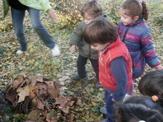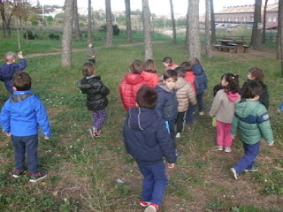 Avui dilluns a la tarda ens hem trobat una nota a la classe que deia: Nens i nenes sóc el Tió, estic al bosc i tinc gana i fred. Sisplau, veniu-me a buscar! De seguida hem anat cap al bosquet de l’Aplec i allà l’hem trobat ben amagat sota unes fulles. Però ja l’hem portat cap a l’escola, l’hi hem fet un llitet i l’hem tapat amb una manta. Només ens queda portar-li menjar i esperar que es faci gran.