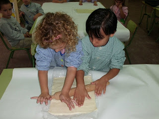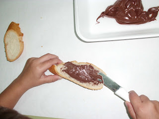 I els nens i les nenes de P-3 han preparat pa amb “nocilla” i fruits secs: