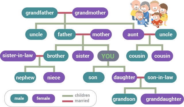 Here you are a big family tree. It will help you to learn new words.