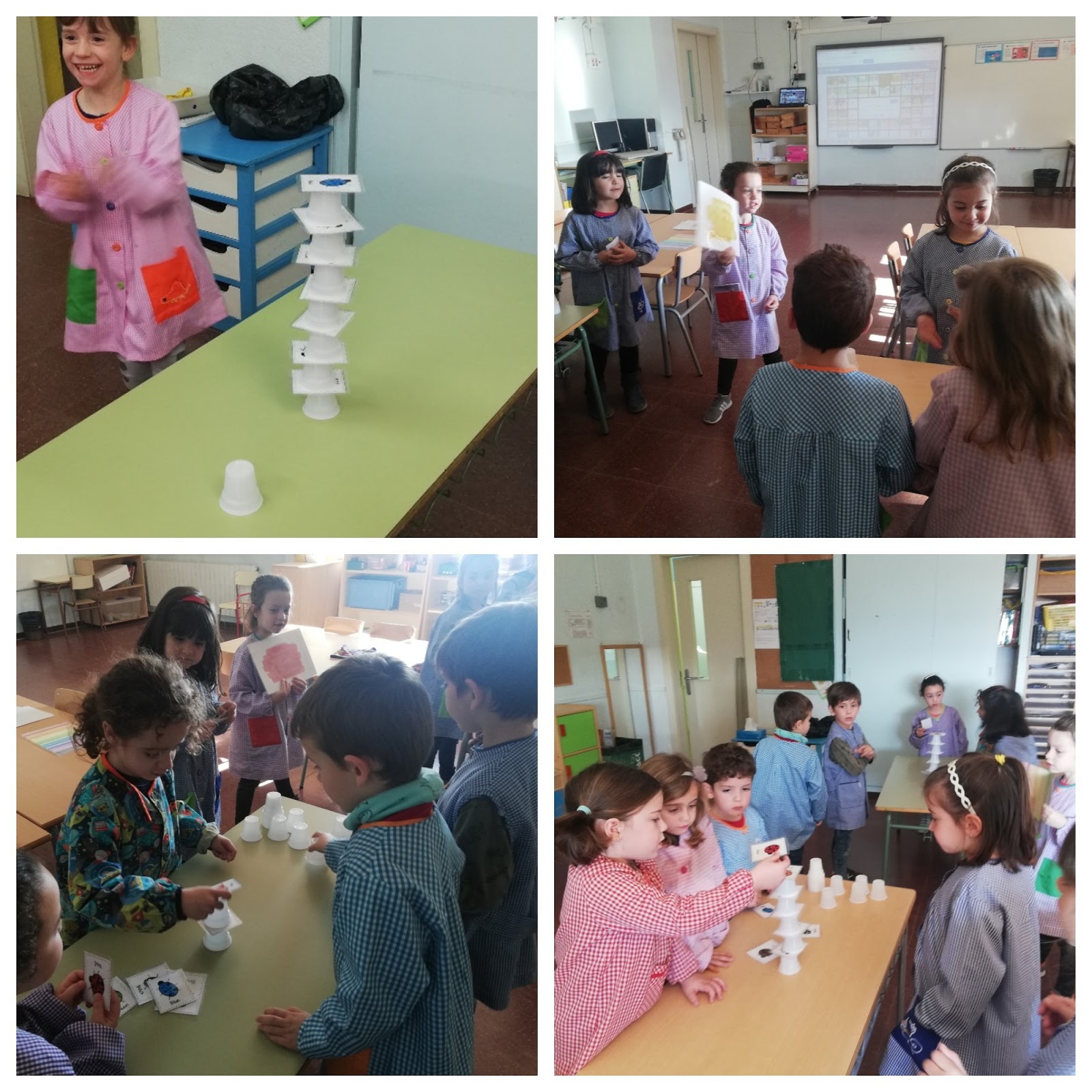 La classe dels dofins està repassant el nom dels colors en anglès.  Avui hem jugat a “build a tower” i ens ha agradat molt!