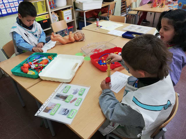 Racó de lletres: treballem la lectoescriptura a partir de vocabulari d’aquest centre d’interès i proposant l’escriptura d’una recepta mèdica.