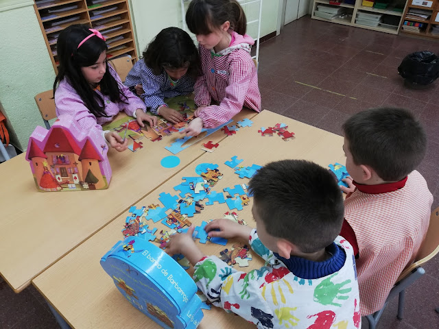 Racó de puzzles, on hem de col·laborar i posar-nos d’acord per aconseguir muntar-los.