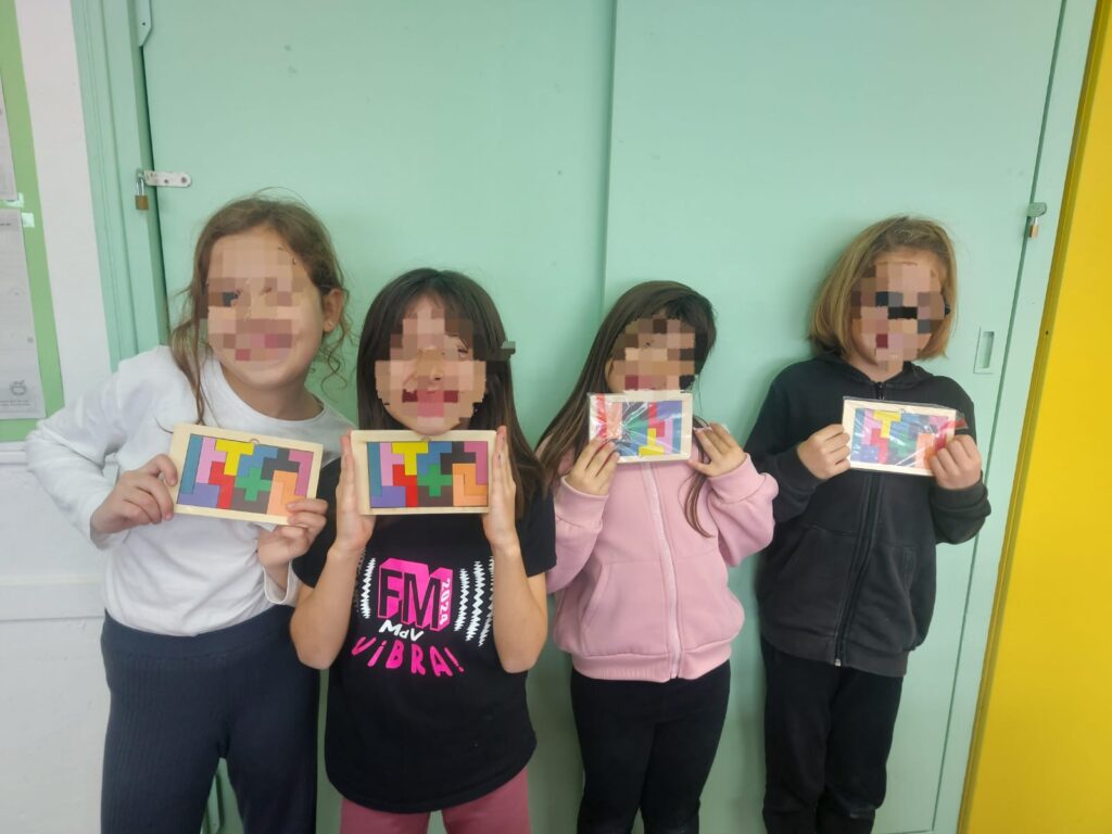 Cada infant ha rebut un número i, de manera totalment aleatòria, se li ha assignat un petit regal. L’escola ha preparat un detallet per a cadascun d’ells, cuidant que fos significatiu i educatiu. Tots els nens i nenes han obtingut un joc de lògica de fusta, molt divertit i entretingut, ideal per estimular el pensament i la concentració.