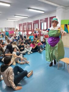 Després ens ha fet preguntes com una mena de concurs, mentre ens anava explicant la història del seu llibre. Quan l’encertàvem ens feia fer un aplaudiment o dos, o un de molt fort…