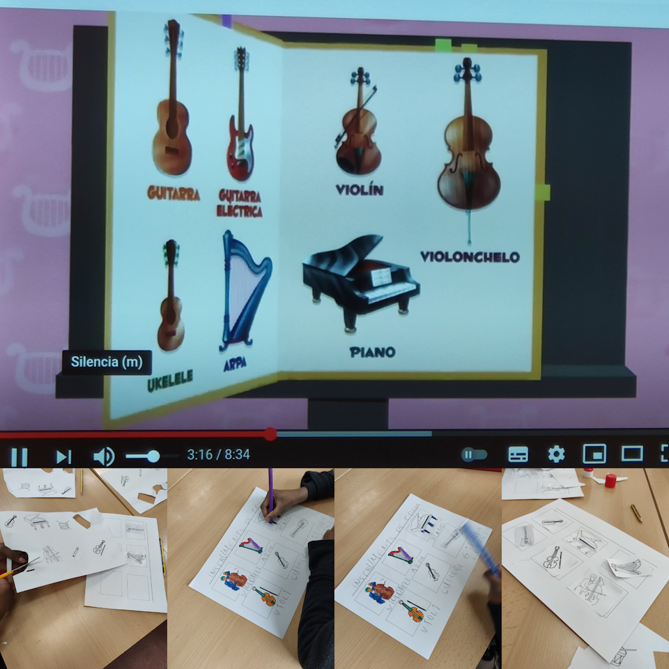Posteriorment, mitjançant un vídeo hem conegut les diferents famílies d’instruments musicals i hem classificat els instruments que coneixem i d’altres que hem descobert segons si són de corda, vent o percussió.