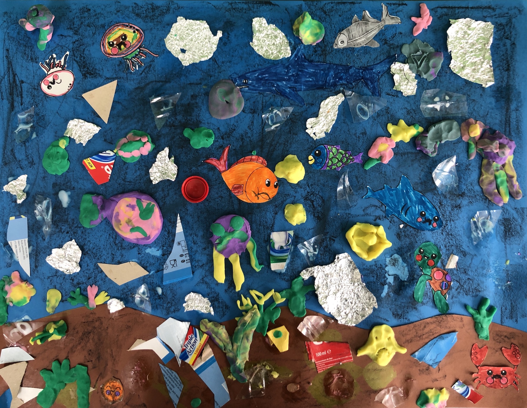 El resultat va ser aquest, un mar feliç, ple de colors i vitalitat, i un altre fosc, cobert de plàstics i productes que el contaminen.