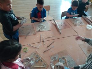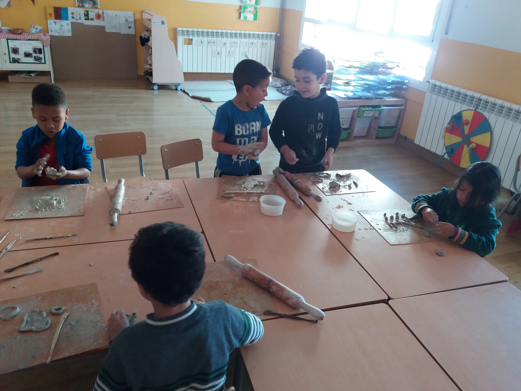 Aquest trimestre hem començat a treballar el modelatge amb fang. Primer hem experimentat amb la seva textura, l’olor, l’hem posat molta aigua i hem vist què passa, etc. Després hem pensat quina figura, o figures, volem fer i hem emprat els diferents estris necessaris per aconseguir-ho. Hem hagut d’esperar uns dies perquè el fang estigui ben sec i després hem pintat les nostres obres d’art amb colors ben vistosos i tenint molta cura de no trencar-les perquè algunes parts són una mica fràgils.