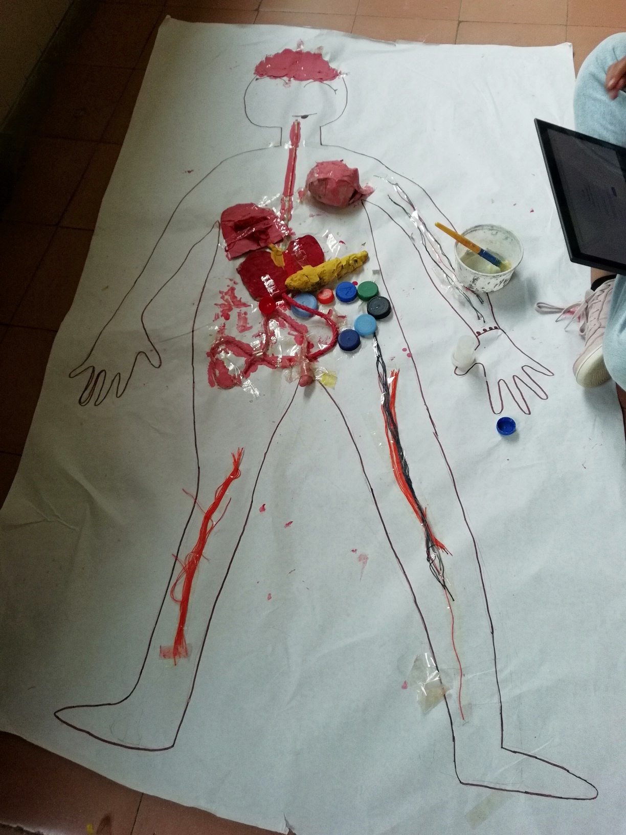 Hem utilitzat material reciclat, com cartró, papers, llana o fil per tractar de reproduir, el més fidelment possible el nostre cos.