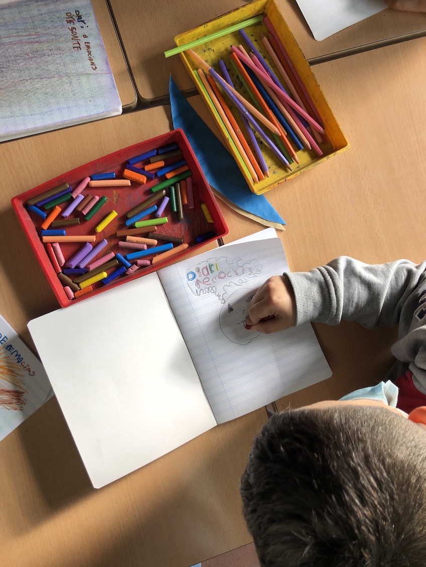 A la classe de 2n estem molt contents, ja que ens hem iniciat amb el diari d’emocions. Cada infant té una llibreta petita, on podrà plasmar com se sent cada dia a l’escola. Considerem que és molt important que els infants puguin expressar els seus sentiments, emocions i estats d’ànims mitjançant l’escriptura, ja que és una forma de desenvolupar l’escriptura creativa. A més, d’aquesta manera, volem aconseguir que els nostres infants assoleixin l’hàbit d’escriure una estona cada dia, d’una forma plaent i sense cap tipus d’obligació. Ells han de ser els principals protagonistes del seu diari i han d’utilitzar-lo quan ho considerin oportú, sempre i quan sigui possible. Ja portem una setmana amb el diari i la veritat és que estem molt il·lusionats. Aquí us deixem algunes de les imatges del dia que vam fer la portada.