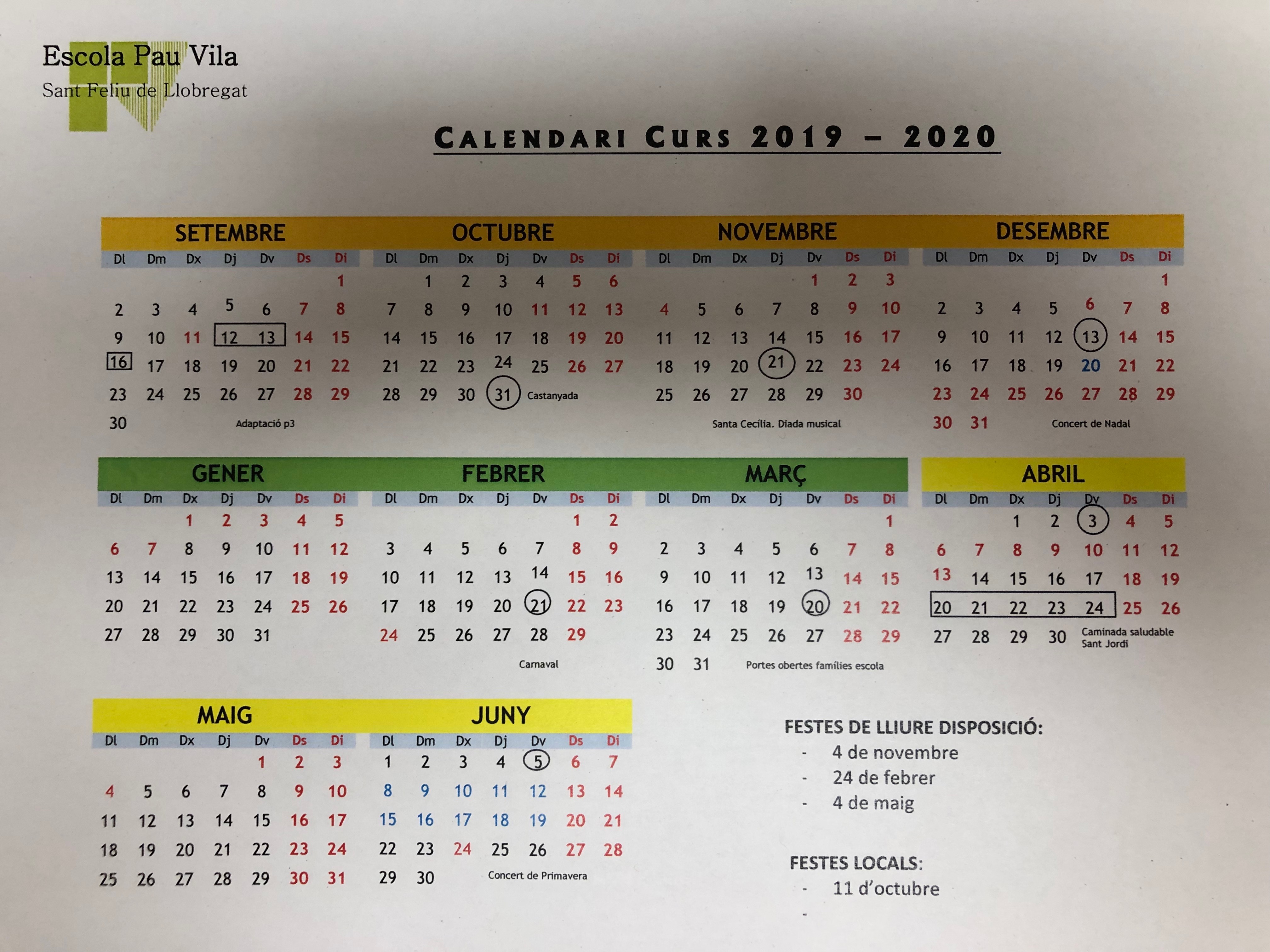 • CALENDARI CURS 2019 2020