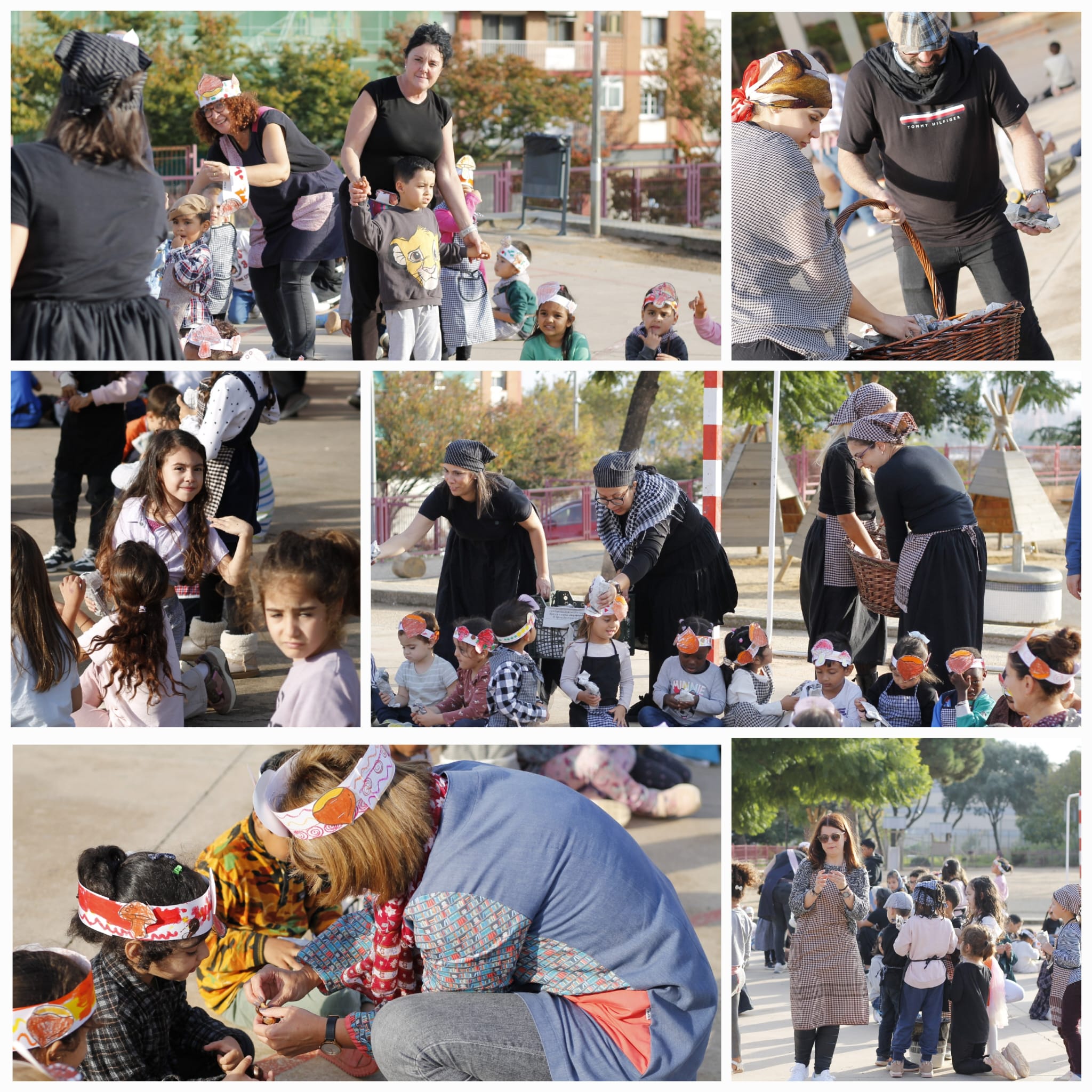 Una any més els infants s’han disfressat de castanyeres i castanyers… i les famílies també! Les Castanyeres i Castanyers ens han fet el tradicional bany i ens han donat un bon sac de castanyes abans de donar pas a la ballaruca!