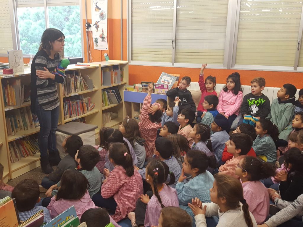 Ell sol no hi podia arribar així que va anar a buscar l’ajuda dels seus amics: la musaranya, la guineu i l’ós. Després de molts i molts intents finalment van aconseguir que la poma vermella caigués. I ara què fem?- es van preguntar els quatre amics. Les nenes i els nens de 1r i 2n ho tenien molt clar i van aportar grans idees: tallar la poma en quatre parts utilitzant una branca afilada, que cada animal en fes una mossegada fins que se l’acabessin.