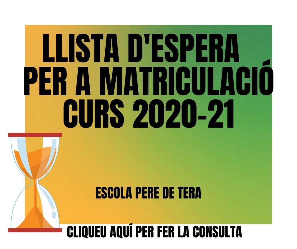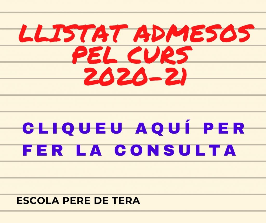 Ja ha sortit el llistat definitiu d’alumnes admesos i el llistat d’Espera a l’escola pel curs 2020-21.