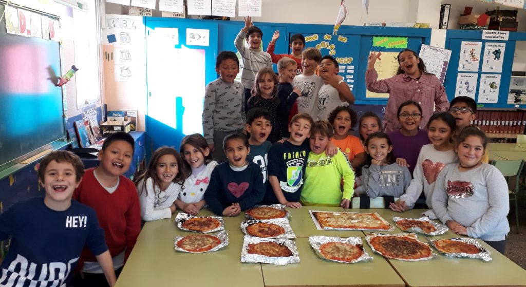 A tercer no parem de tenir grans idees per fer a la classe i aquesta vegada hem fet pizzes!!! Ha estat una activitat molt divertida i deliciosaaaa!!! Totes i tots hi hem col·laborat portant algun ingredient de casa. Per taules hem fet quatre gustos de pizzes: Quatre formatges Barbacoa Pernil i formatge Tonyina Ens les